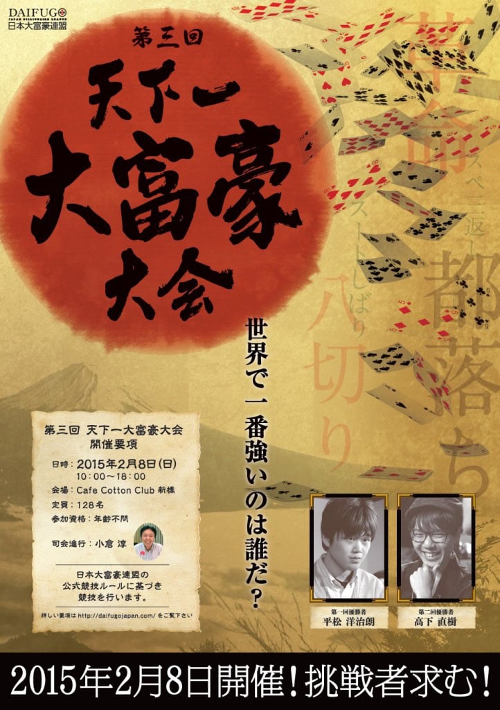 いよいよ第三回大富豪大会の開催が迫ってまいりました。下記は当日の進行とルールの解説です。