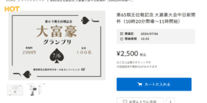 EVENTS / NEWS 2024.05.14第65回王位戦記念 大富豪グランプリ開催決定のお知らせ7月6-7日に愛知県名古屋市で開催される将棋の第65期王位戦第一局を記念して、第1回『大富豪グランプリ』を中日新聞社の後援により7月6日に開催する運びとなりました。会場は翌日に大盤解説会も行われる中日ホール&コンファレンス6Fのコンファレンスルームです。